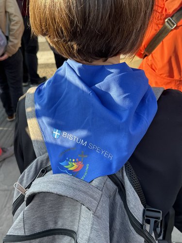 Ein wahrlich aufregender Tag liegt hinter uns oder mit anderen Worten: Dieser Tag war der Höhepunkt unserer Wallfahrt. Bereits um 6.45 Uhr ging es mit den Bussen von unseren Hotels aus los Richtung Petersplatz, denn heute stand die Generalaudienz mit Papst Leo XIV. auf dem Tagesprogramm. Neben den 357 Pilgerinnen und Pilgern aus Speyer wurden weitere 60.000 – 80.000 Gläubige erwartet. Eine unbeschreibliche Zahl, die in den vollen Straßen Roms spürbar war. Das Ziel war es natürlich: Papst Leo so nahe wie möglich zu kommen und eins oder auch zwei, oder vielleicht auch mehrere Fotos als Erinnerung mitnehmen zu können. Als wir auf dem Petersplatz ankamen, hieß es erstmal durchatmen: Die erste Hürde war geschafft. Und mit Blick auf die Uhr war auch gar nicht mehr viel Zeit, um einen guten Stehplatz zu ergattern. Kurz vor 10.00 Uhr erblickten wir ihn dann, wie er mit seinem Papamobil durch die abgesperrten Wege bis zum Petersdom fuhr. Ein wirklich besonderer Moment! Aufregung macht sich in der Gruppe breit, es wurde gejubelt und gerufen!